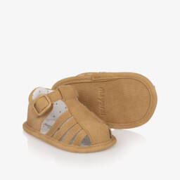 These dark beige faux leather pre-walker sandals by Mayoral are a sweet choice for baby boys and girls. Flexible and comfortable, they feature a wide fit to support growing feet, a soft cotton jersey lining and velcro strap providing a secure fit and easy fastening.