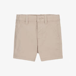 Cool and comfortable for baby boys, these beige chino-style shorts by Mayoral, are made in soft, lightweight cotton. A classic look, they feature faux pockets and belt loops, with a single button fastening on the front. The elasticated waistband is adjustable for an ideal fit.
