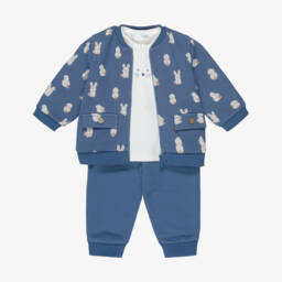 Cosy and comfortable for baby boys, this cotton-blend jersey tracksuit set is by Mayoral. With a softly ridged texture, the ivory zip-up top has faux pocket detailing and sweet train embroidery on the chest. The ivory top is embroidered with a car and trees, whilst the dark beige joggers have a gently elasticated waistband for easy wear.