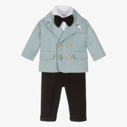 Baby Boys Blue Cotton Waistcoat Suit