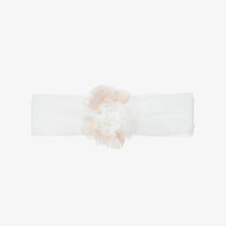 This cute ivory headband for baby girls by Mayoral adds a sweet touch to any outfit. Made from soft and stretchy jersey, it features a delicate beige flower embellishment and a gently elasticated back for comfort.