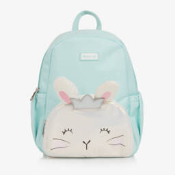 This turquoise blue backpack by Mayoral is a playful accessory for girls. Made from durable canvas, it features a sweet, shiny bunny, with a silver crown and 3D padded ears on the front. The main compartment and front pocket both fasten with a zip and there are stretchy, external side pockets, ideal for a small water bottle or other essentials. The padded shoulder straps are adjustable for a comfortable fit and there is a useful carry handle on the top.