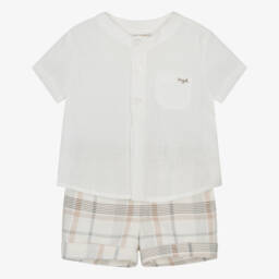 Casual black shorts set for older boys by Mayoral Nukutavake, made in soft, comfortable cotton jersey. The short-sleeved tee has a crew neckline and cool track-inspired graphics on the front and back, with the 'Go The Distance' slogan. Matching shorts have slanted front pockets, a concealed back pocket and an easy drawstring waist for an ideal fit.