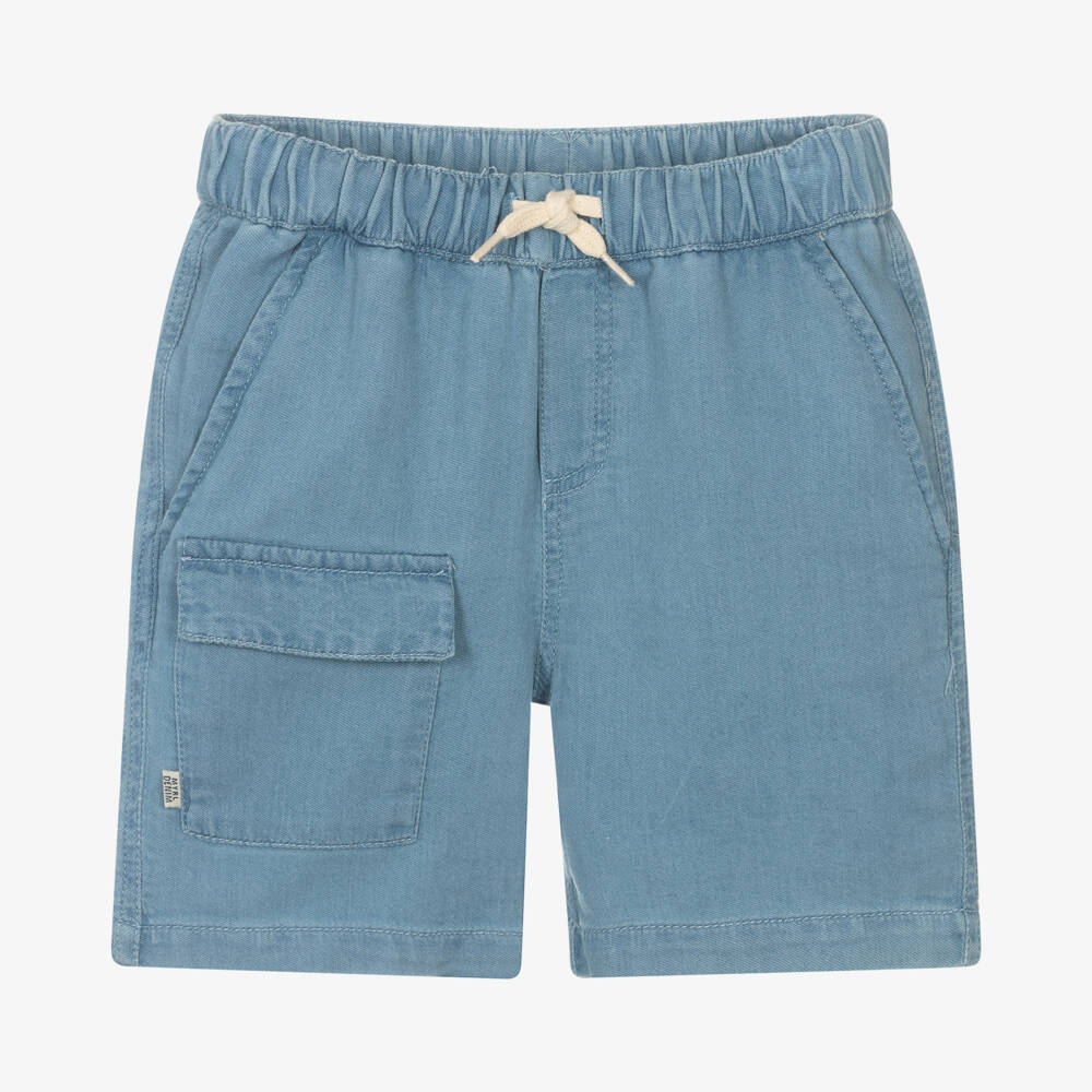 Casual blue shorts for boys by Mayoral, made in soft cotton jersey. Fusing the comfort of jersey with the style of denim, these shorts have an elasticated drawstring waist for a superior fit. They are finished with four handy pockets, ideal for storing small essentials.