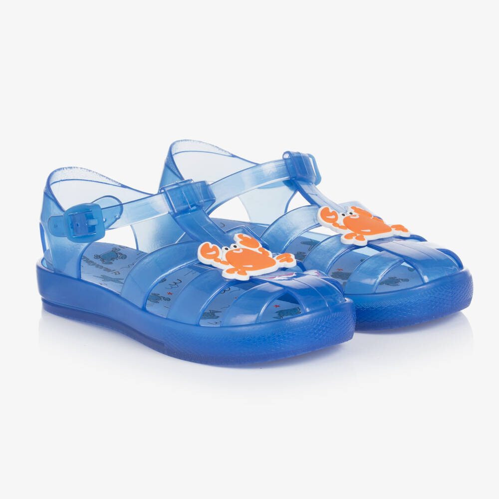 Easy-to-wear, these blue rubber jelly shoes for boys are from Mayoral. Great for wearing at the beach or in water, they are super flexible, lightweight, and have an adjustable buckle fastening for secure wear. A orange rubberised crab is decorated on the front for added fun. The removable fabric insole is comfortably padded, and the rubber outsole is non-slip.