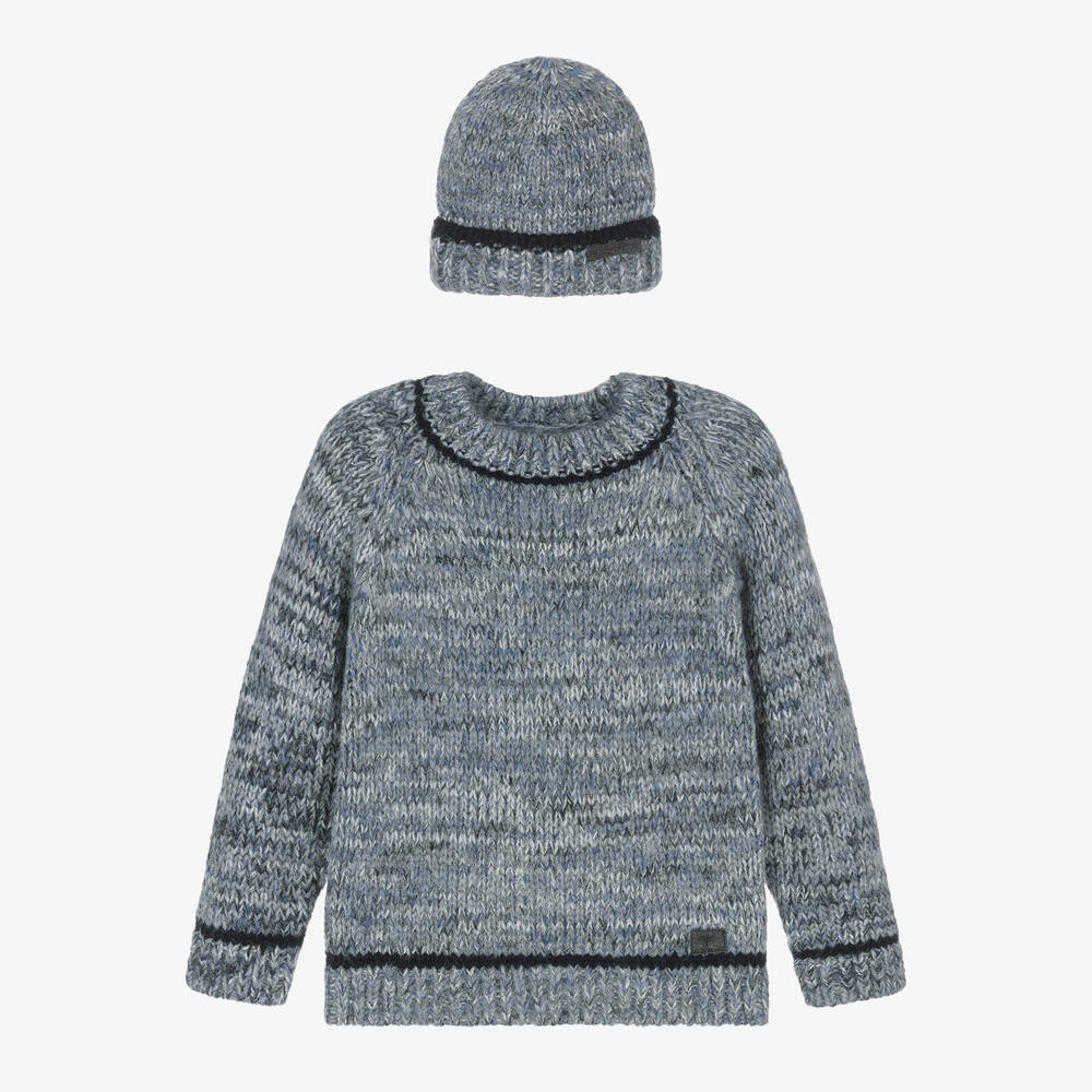 Boys Blue Knitted Sweater & Hat