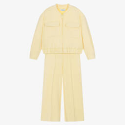 Comfortable charcoal grey tracksuit for boys by Mayoral, made in soft cotton-blend jersey, with a warm, fleecy inside. The hooded, zip-up top has popper-fastening pockets on the chest, whilst the matching joggers have front and back pockets and a drawstring waist for a great fit. Both pieces have cool beige panels for a sporty look. Completing this casual outfit is an ivory long-sleeved, cotton jersey top that has a playful 'Non Stop Motion' print on the front.