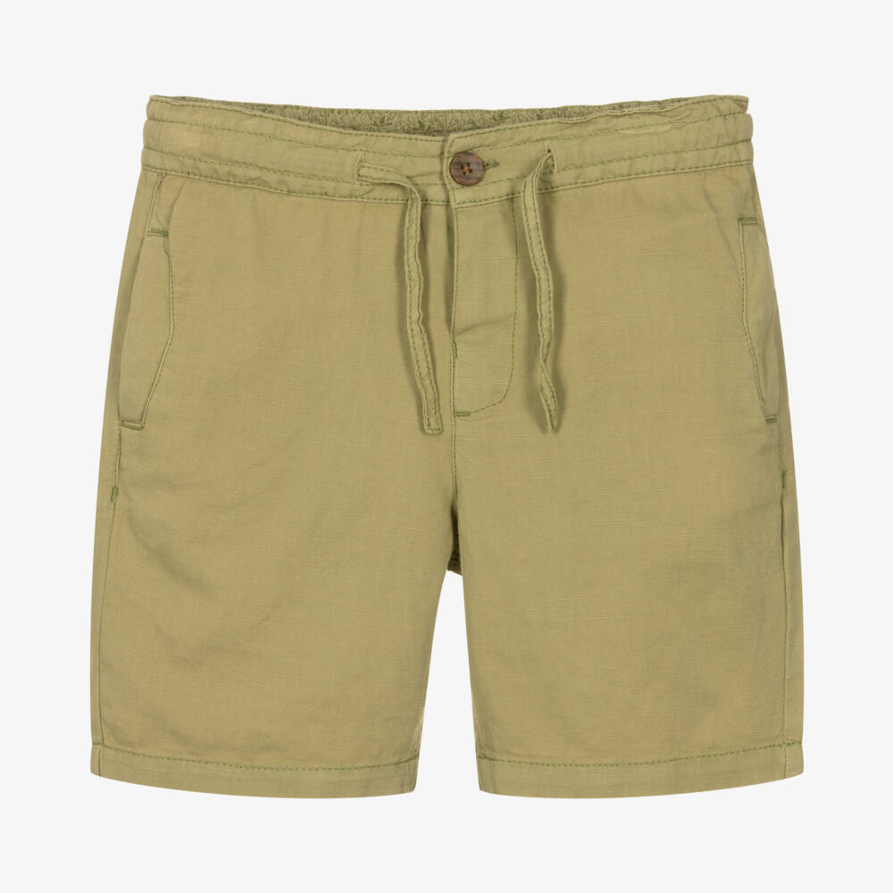 Boys Green Cotton & Linen Shorts