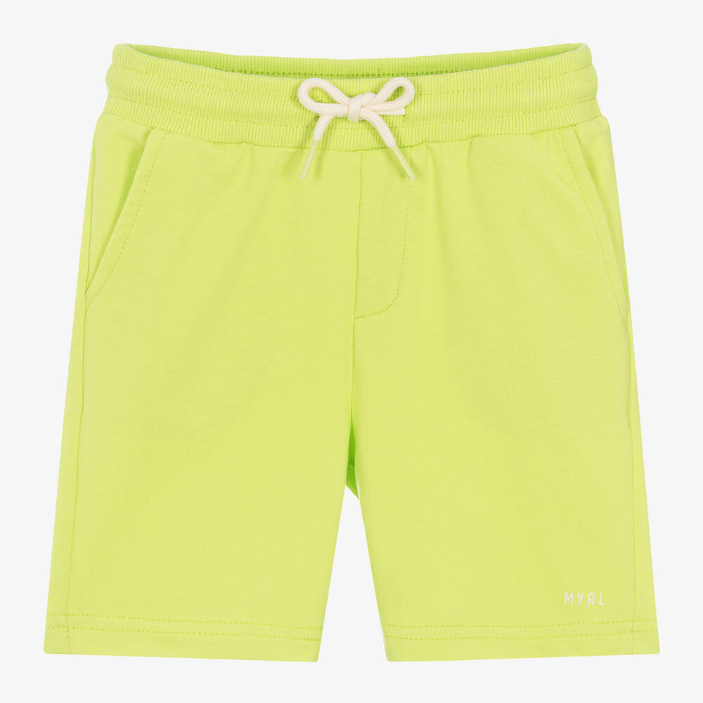 Casually styled, these lime green shorts for boys by Mayoral are made from soft, lightweight, cotton jersey. Complete with useful slanted pockets on the front and a patch pocket on the back, the elasticated waistband has an ivory drawstring for a comfortable fit. A small logo is printed near the hem for a subtle branded finish.