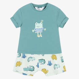 Boys grey and white shorts set by Mayoral, made in soft cotton jersey for a comfortable wear. Lightweight and ideal for warmer days, the henley style T-shirt has a useful chest pocket and a small sailing motif on the front, whilst the striped shorts have a drawstring waist, concealed front pockets and a cargo pocket on one leg.