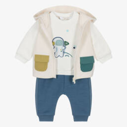 Boys Ivory & Grey Cotton Dino Tracksuit