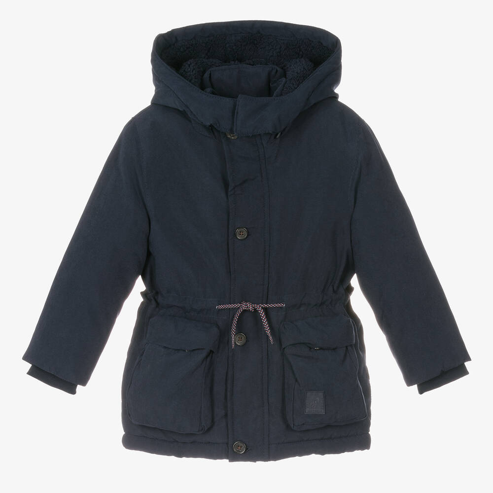 Boys Navy Blue Hooded Parka Coat