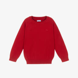 A comfortable addition to his wardrobe, this red sweater for boys is by Mayoral. Finely knitted in soft cotton for lightweight warmth, it has raglan sleeves and a small embroidered tonal logo on the chest.