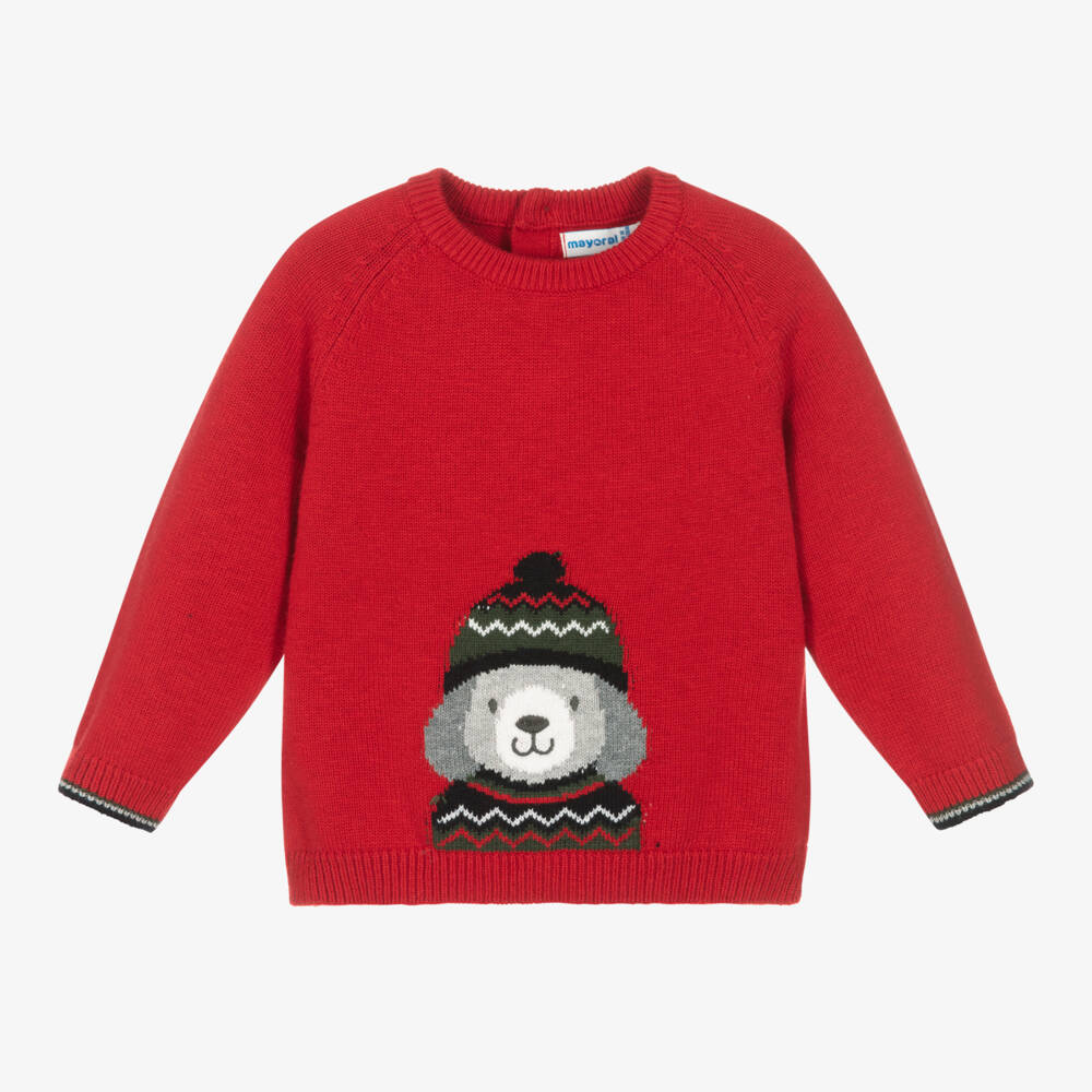 Boys Red Knitted Dog Sweater