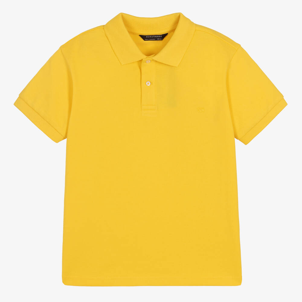 Classic bright yellow polo shirt for older boys by Mayoral Nukutavake, made in soft sustainable cotton piqué. Comfortable and stylish, it has ribbed trims, branded button fastenings and a discreet rubberised tonal logo on the chest.