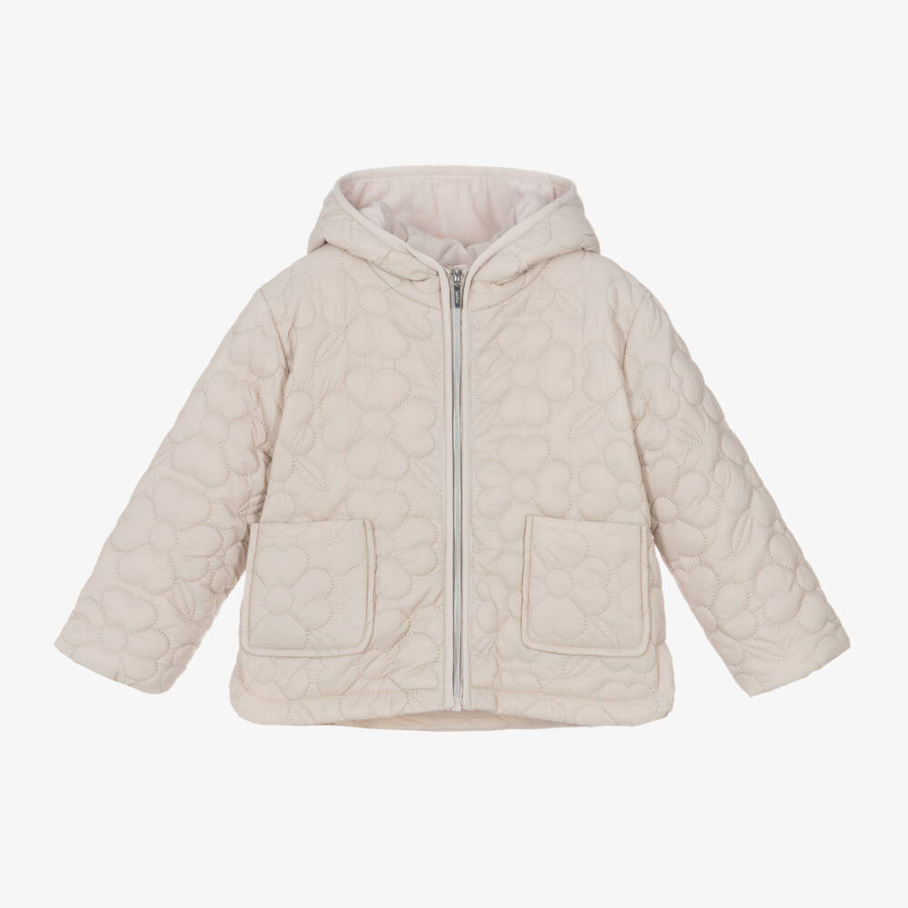 Girls Beige Floral Quilted Jacket