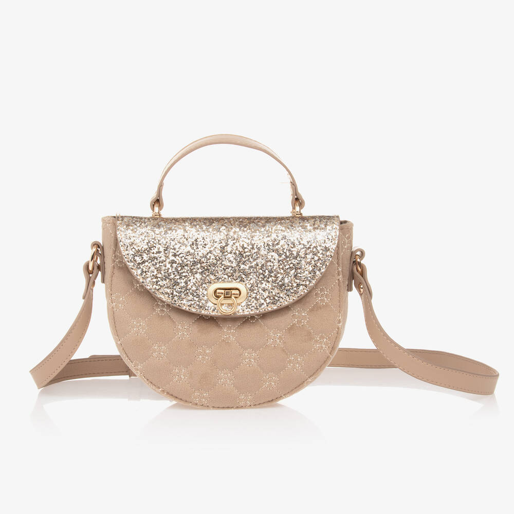 Girls Beige & Gold Glitter Handbag (17cm)