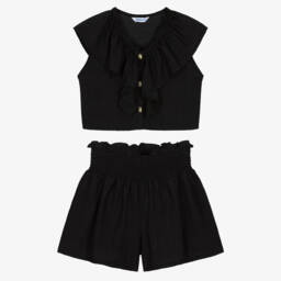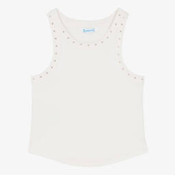 This black vest top by Mayoral, for older girls, is a stylish addition to any casual wardrobe. Made in soft, stretchy cotton jersey, it has a subtle ribbed texture with a curved hemline and shiny silver-tone studs around the neckline and armholes adding a touch of glamour.