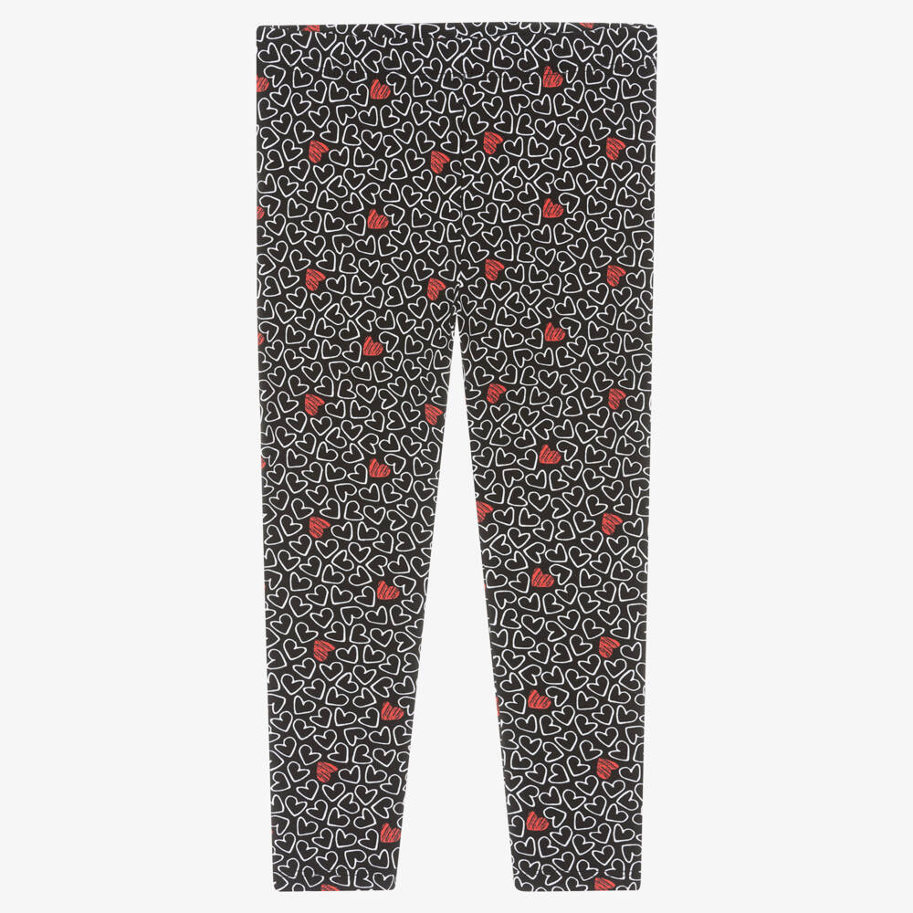 Girls Black Heart Print Leggings