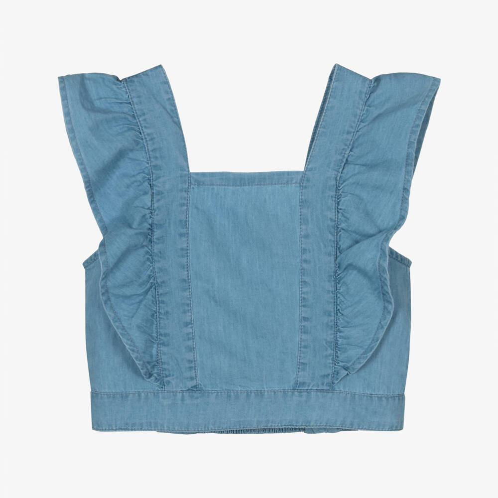 Girls Blue Chambray Ruffle Top