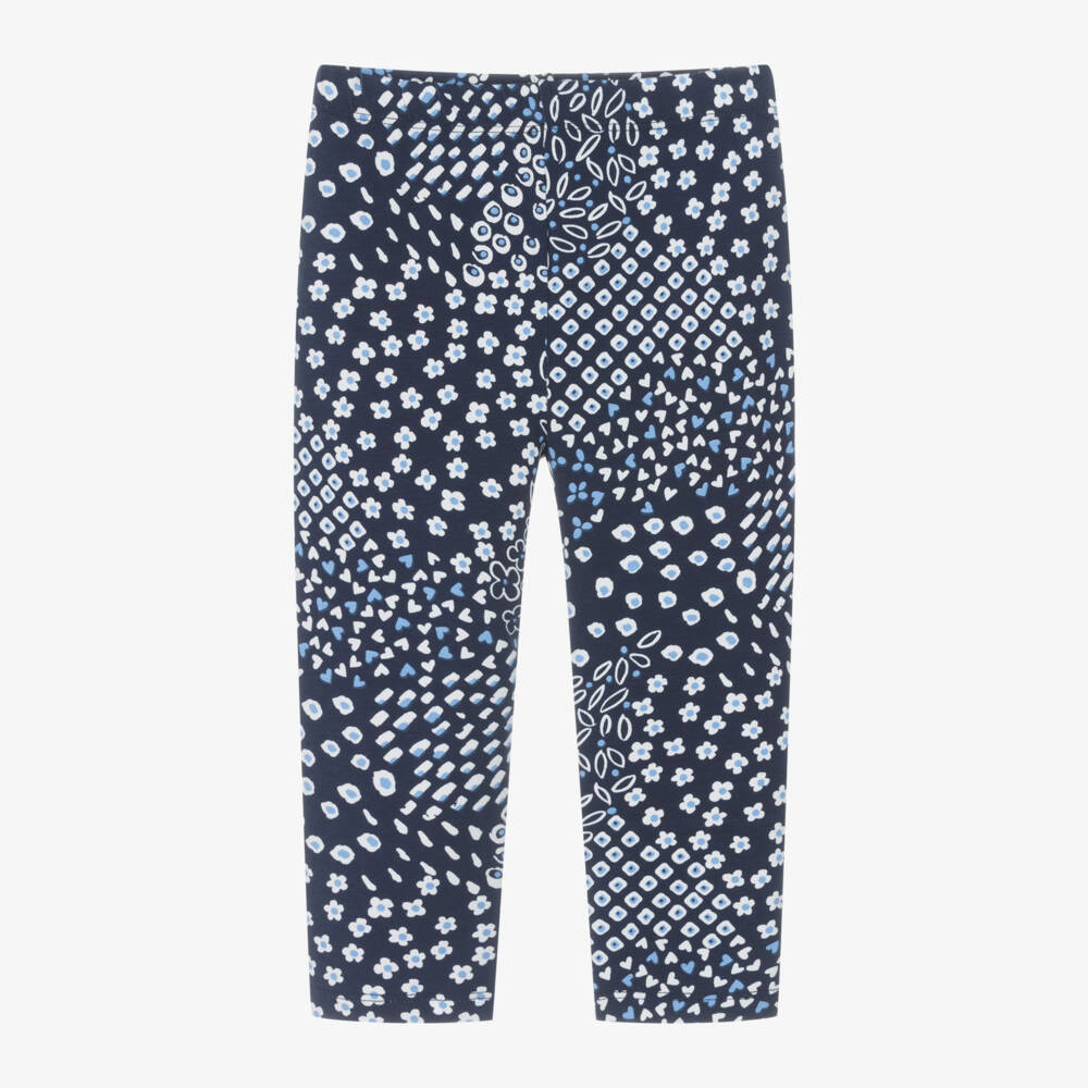 Girls Blue Floral Cotton Leggings
