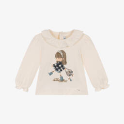 Cosy and comfortable for little girls, these light brown trousers by Mayoral are made in soft velour corduroy. They have an elasticated waist for easy pull-on, with cute faux pockets on the front and two functional pockets on the back.