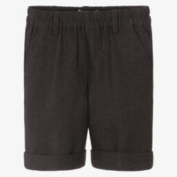 Simply lovely, a dark charcoal grey A-line skort for older girls by Mayoral. It is woven in a soft and lightweight viscose and linen blend with a unique ring detailing on the wrapped-over front. A concealed zip fastens neatly on the side.