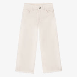 Girls wide-leg jeans by Mayoral, made in cream denim with stretch for comfort and frayed hems. They are easy to pair with her favourite tops and have a useful adjustable waistband for a better fit.