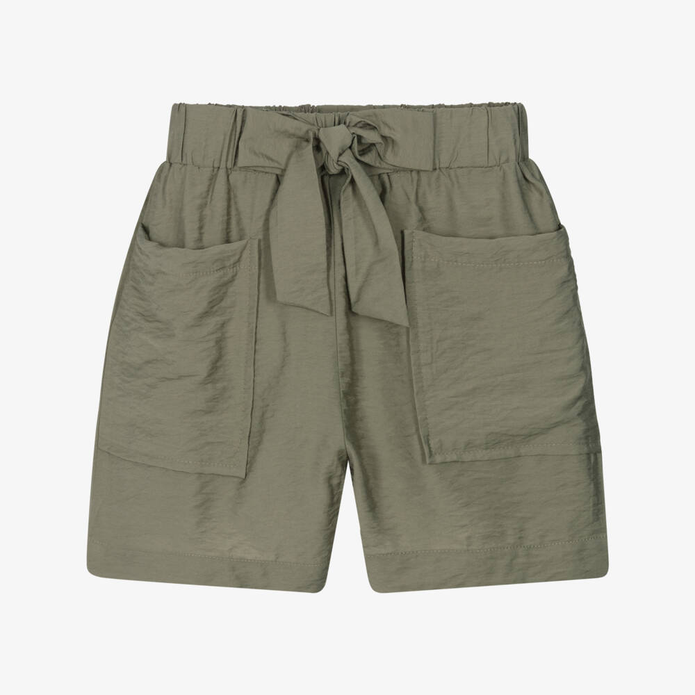 Girls khaki green shorts by Mayoral, made in silky, textured viscose fabric. Offering both style and comfort, they are designed with an elasticated waistband and feature a lovely tie detail. Large patch pockets complete the look, ideal for storing little essentials.