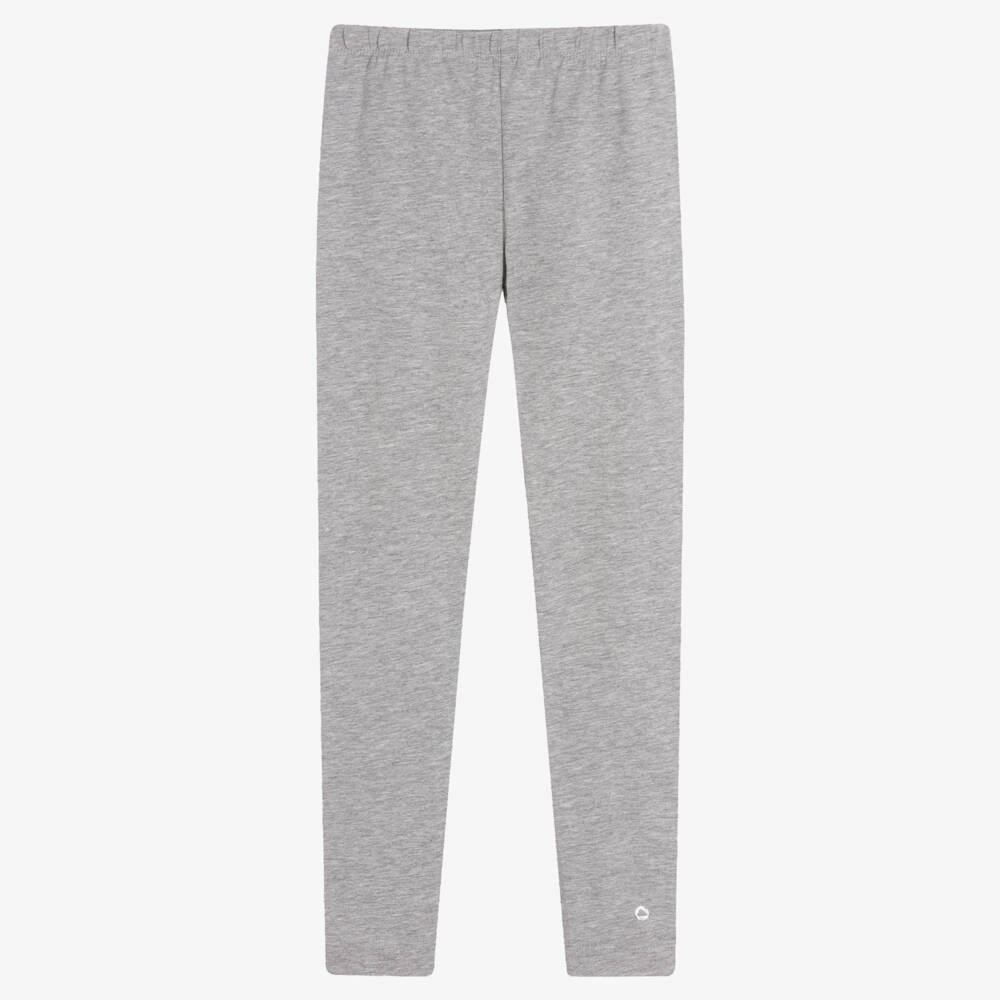 Easy-to-wear and style, these grey marl jersey leggings for girls are by Mayoral. Made in soft sustainable cotton, these leggings are stretchy for comfort, and feature a silver foil logo on one ankle.