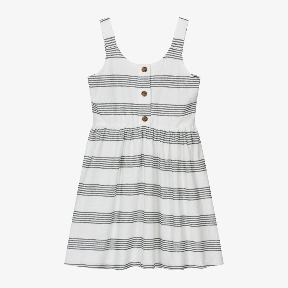 Girls Ivory & Black Stripe Cotton Dress