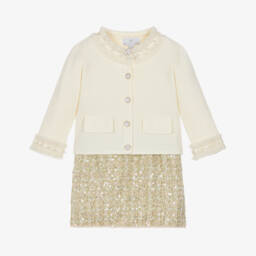 Girls ivory bar shoes by Mayoral, made in glossy patent faux leather. These charming shoes fasten easily with a velcro strap, trimmed with beautifully soft faux fur and a metal logo plate. Lined in soft and supple leather, they have a cushioned leather insole for comfort and a non-slip rubber outer sole for good grip.