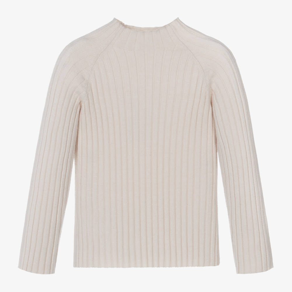 Girls Ivory Ribbed Turtleneck Top