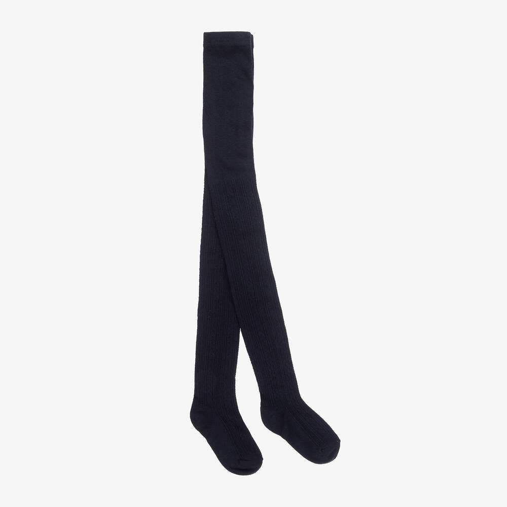 Girls Navy Blue Knitted Tights