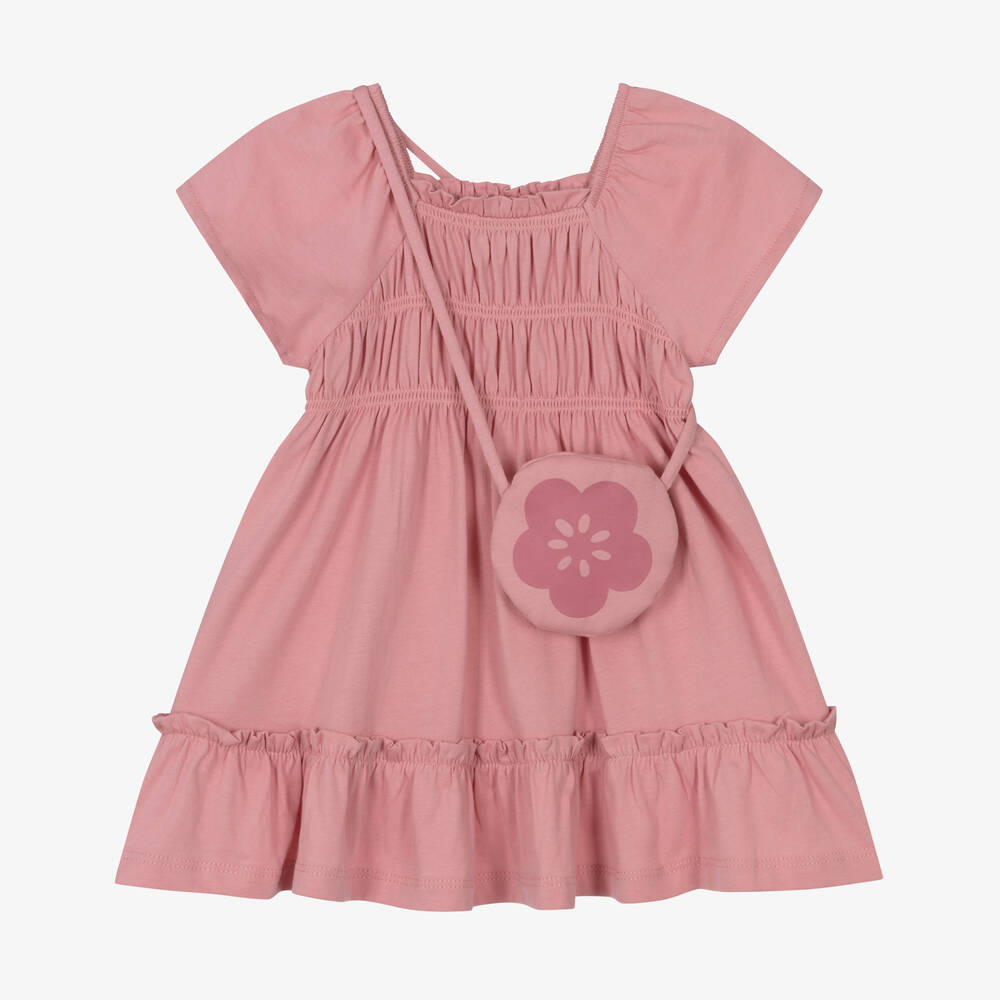 Girls Pink Cotton Dress & Bag Set