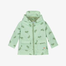 Pink hooded raincoat for girls by Mayoral, made in smooth, rubberised fabric. This lightweight coat has a silky lining and is styled like a parka with an elasticated drawstring around the waist for a flattering fit. There are zip-fastening pockets on the front and a rubberised logo patch on one sleeve.