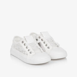 Rose pink high-top trainers for girls by Mayoral, made in soft faux leather. The girly uppers have a lovely shimmer and gorgeous ruffle trims on the velcro fastening straps. There is a soft textile lining for comfort and a non-slip rubber sole, adding vital grip in slippery conditions.