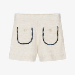 Pink jacket for girls by Mayoral, knitted in a soft viscose blend. Ideal for layering, this smart-casual style has patch pockets and pretty scalloped trims. It fastens with shiny gold crest buttons for an elegant finish.