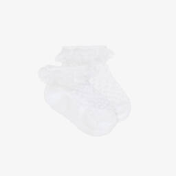 These pink socks for little girls by Mayoral are lovely for a special occasion. Soft and comfortable, they are made in sheer tulle with a sweet polka dot design, complemented by a frilly lace trim around the ankle.