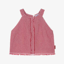 Offering a stylish and summery look, this red and white striped halter neck top for older girls is by Mayoral. Woven in lightweight cotton denim, it features subtle fringing detail for a vintage vibe, and has a keyhole button fastening at the back.