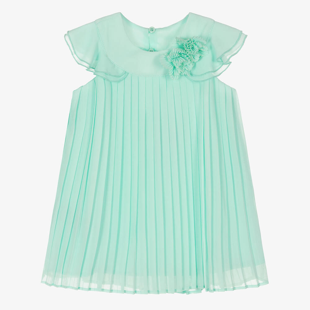 Girls Turquoise Blue Pleated Chiffon Dress