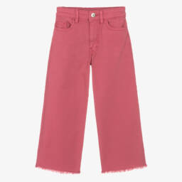 White T-shirt for girls by Mayoral, made in soft cotton jersey. It features a stylish pink bag print on the front, embellished with a delicate 3D flower and gold-tone sequin detailing. This casual tee has pretty scalloped sleeves.