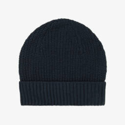 Dark grey beanie hat for boys and girls by Mayoral, in a chunky ribbed cotton knit for comfort and warmth. Ideal for those chilly days, it has a turned-up brim with tonal embroidery detailing