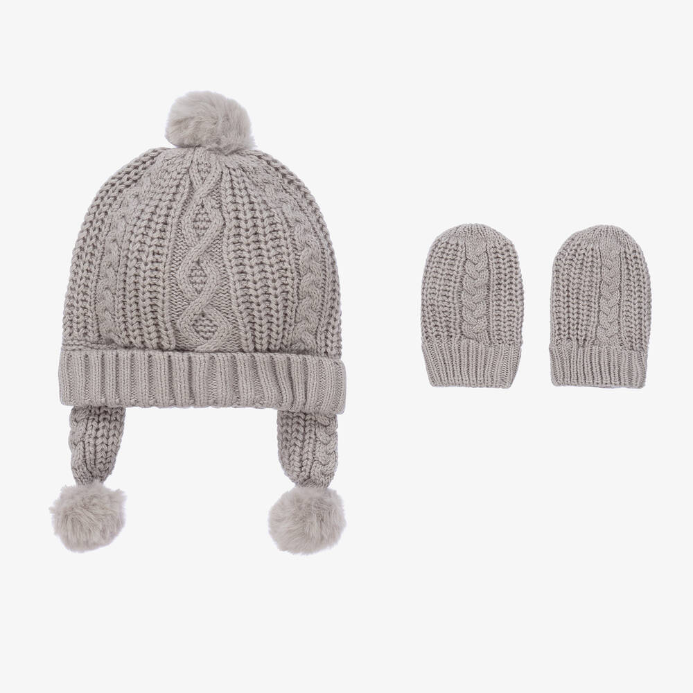 Grey Knitted Baby Hat & Mittens Set