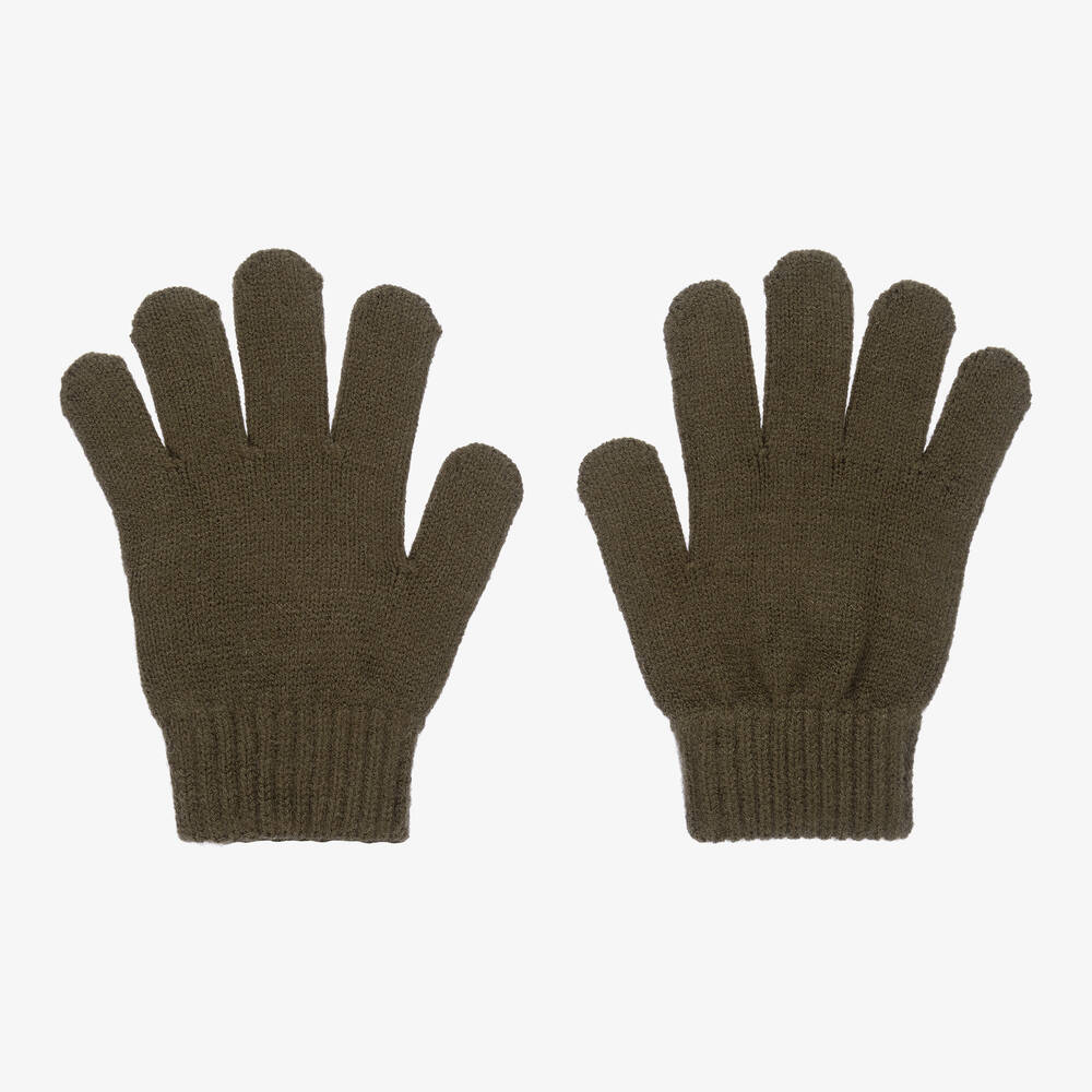 Khaki green gloves for teen boys by Mayoral, knitted in a soft viscose blend. The wrists are gently ribbed to keep hands warm and ensure a comfortable fit.
