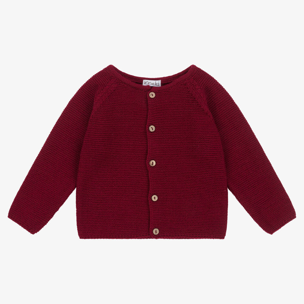 A lovely burgundy red cardigan for baby boys and girls by Mebi. In a beautiful soft knit, it has raglan sleeves and fastens with traditional wooden buttons on the front.
