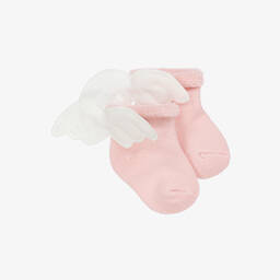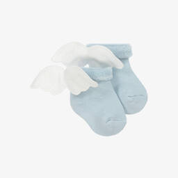 Cute blue socks for baby boys and girls by Meia Pata, beautifully made in soft cotton. White wings are appliquéd on the back of each heel for an angelic look.