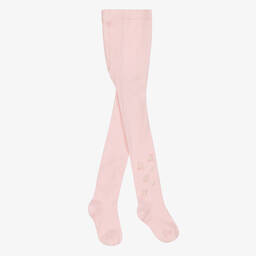 Cute pink tights for girls by Meia Pata, beautifully made in soft cotton. They are adorned with gorgeous ivory pearls on the legs for a pretty look.