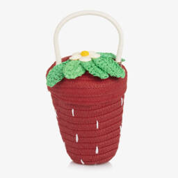 Adorable beige basket bag for boys and girls by Meri Meri, woven in soft straw. The front has a sweet embroidered bunny face, and a pink gingham pouch inside to line the bag. It ties together to secure little belongings and has the appearance of cute bunny ears. The wide handle allows it to be carried under the arm or on the elbow for a lovely accessory to any look.
