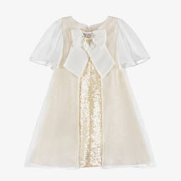 Lovely for a smart or special occasion, a shimmery gold dress for little girls by Michael Kors Kids. Made in silky soft fabric and lined in lightweight voile, this sleeveless style has a gold-tone MK Empire plate at the hem, and fastens neatly with a concealed zip on the back.